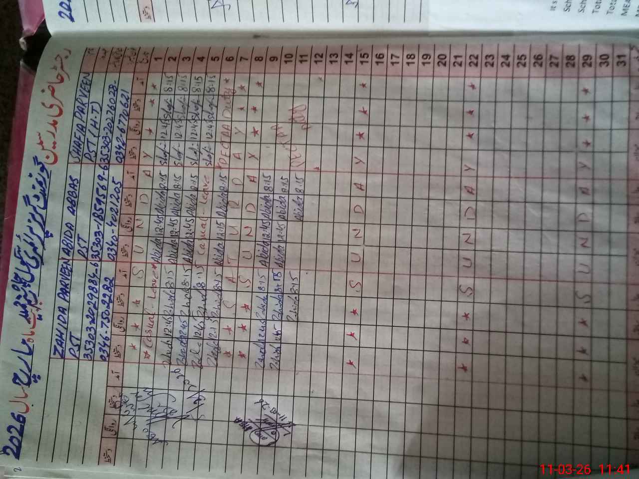 | 35**** | Sh**** Pa**** | PST Arts | Regular | 0 | 0 | 0 | 0 | 0 | 0 | 0 | 0 | 0 | Exam Duty |