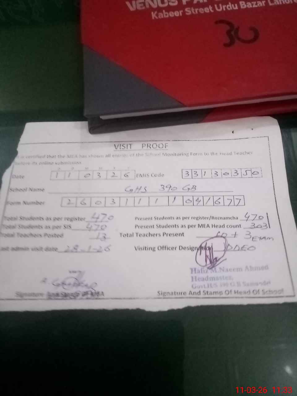 | EMIS Code: 33130350 | Name of School: GHS CHAK 390 GB SAMUNDRI FSD | |||