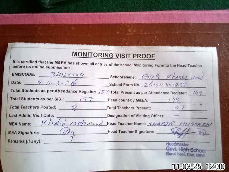 | EMIS Code: 34120004 | Name of School: GHS KHANKI HEAD | |||