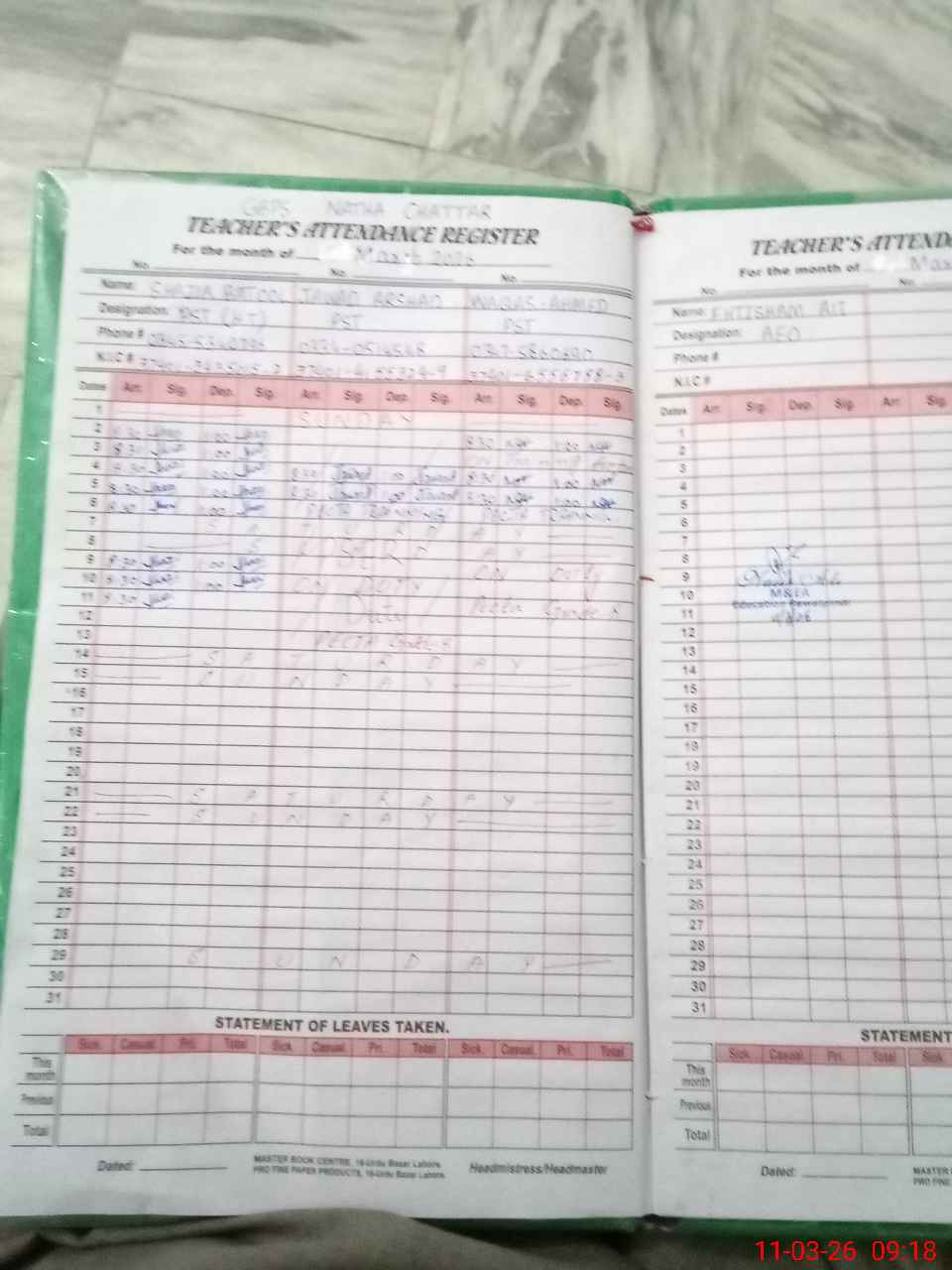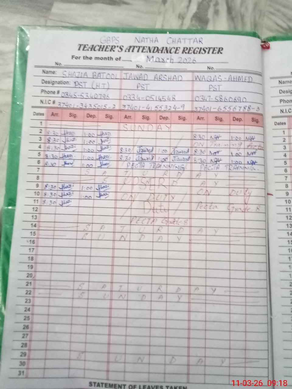 | Name: Sh**** BA**** Designation: (School Headmaster's/Headmistress's) PST Phone/Cell Number: 03**** |