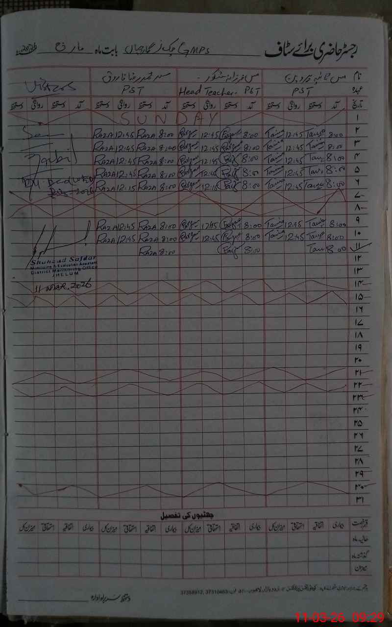 | District: JHELUM | Tehsil: DINA | Markaz: GARH MAHAL-FEMALE | Level: Primary | |