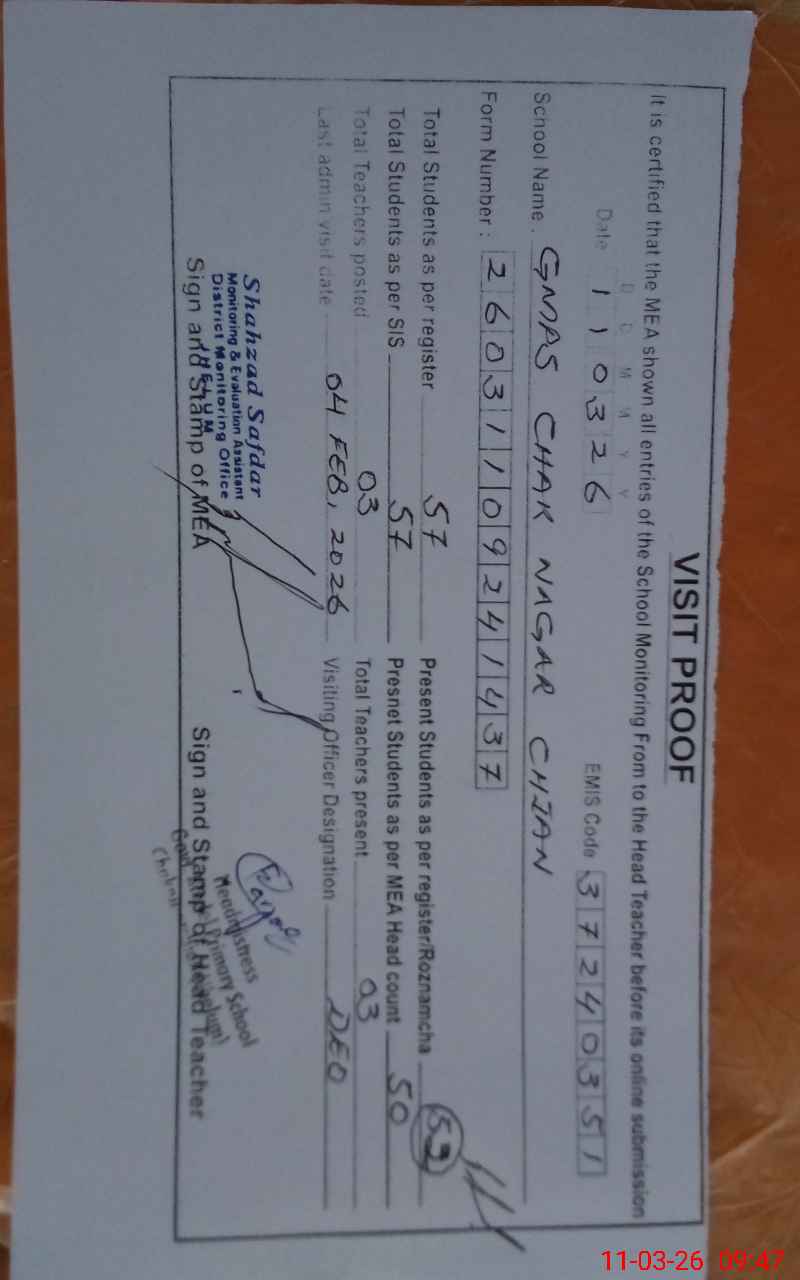 | EMIS Code: 37240351 | Name of School: GMPS CHAK NAGAR CHIAN | |||
