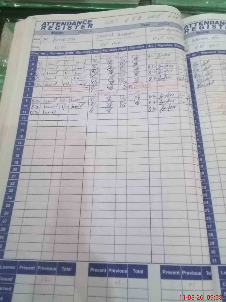 | CNIC | Full Name | Designation | R/C | Absence During Last Calender Month |