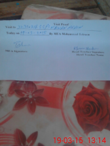 | Attendance Register | Head Teacher | MEA with School | Visit Proof |