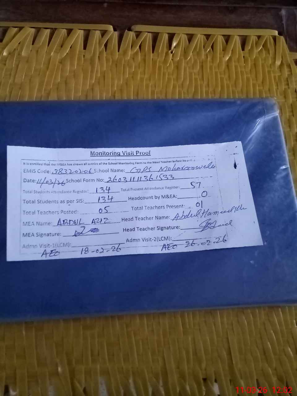 | EMIS Code: 38320206 | Name of School: GPS MOHARAN WALA | |||