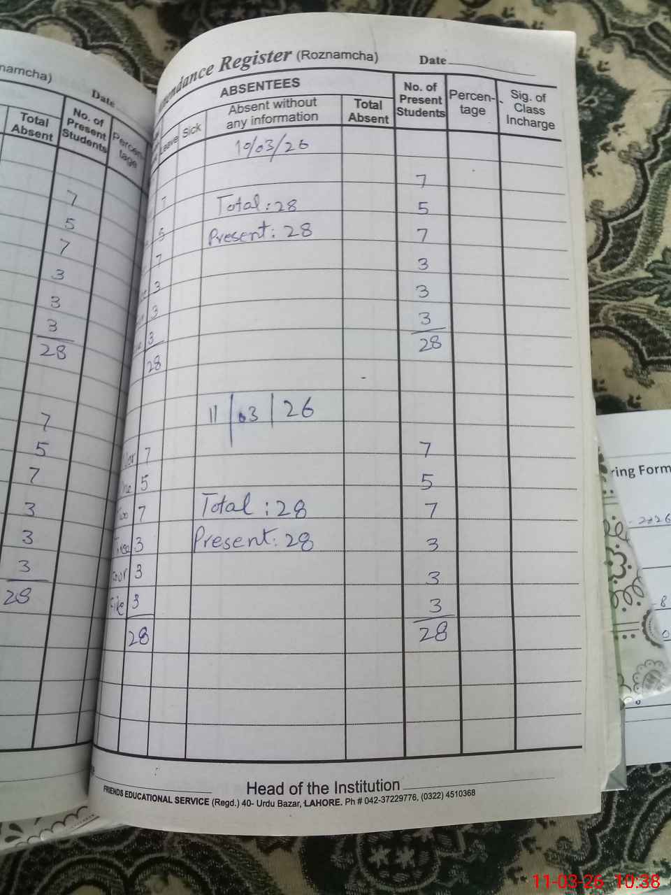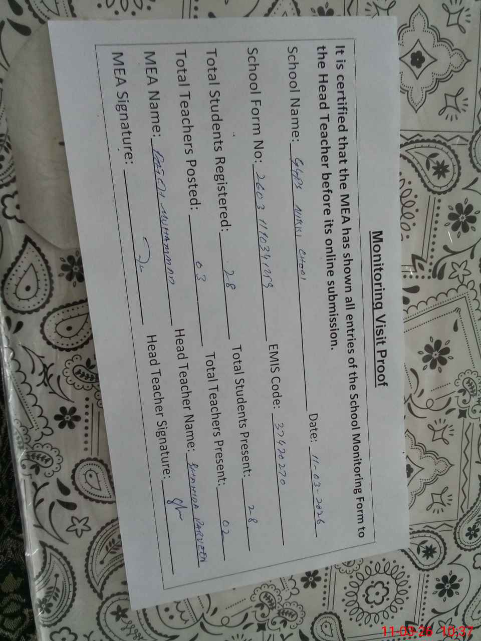 | Attendance Register | Head Teacher | MEA with School | Visit Proof |