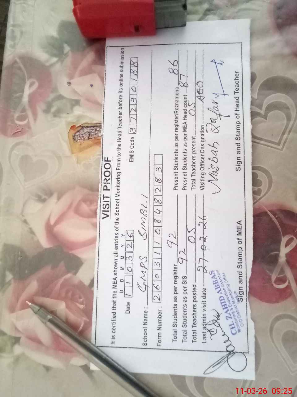 | Certified that this School was Inspected by the Undersigned MEA/DMO Today and the Information Stated Above is as Per Record. | |||||