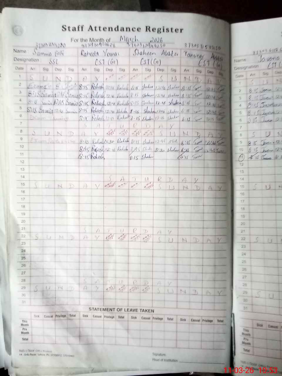 | 37**** | Mu**** Sh**** | PST Arts | Regular | 0 | 0 | 0 | 0 | 0 | 0 | 0 | 0 | 0 | Exam Duty |