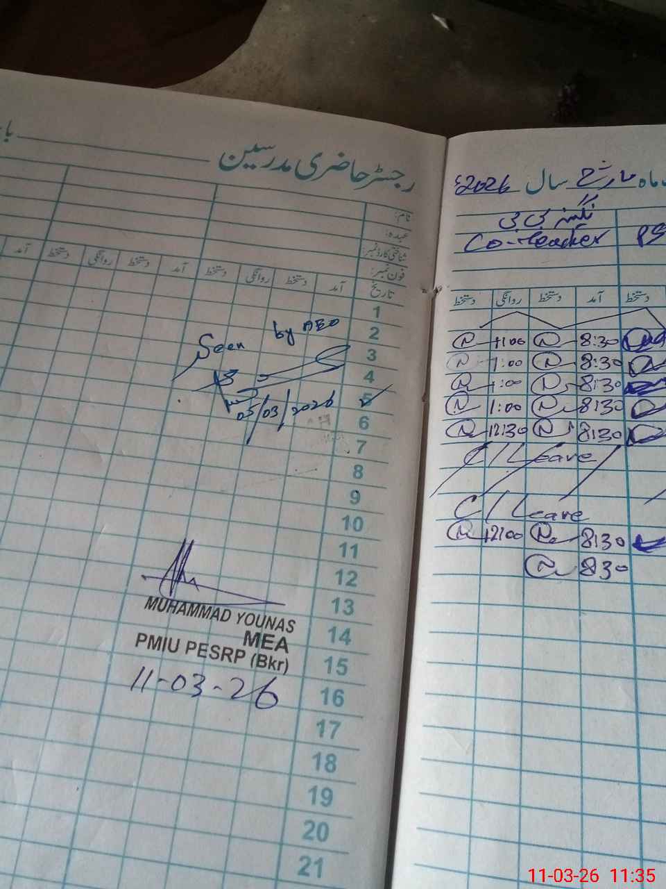 | Name: Mu**** Sa**** Designation: (School Headmaster's/Headmistress's) PST Phone/Cell Number: 03**** |