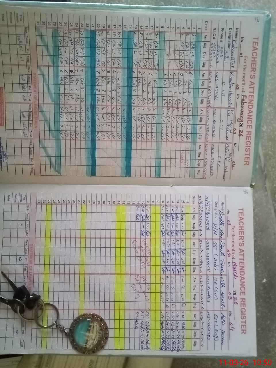 | Remarks (Use Separate Page if Required): as per schedule SBA today ECCE,Kachi,One and 9th,10th,Classes were exempted but now class 7th, till 1055am paper was not conducted student sitting in class with books NSB Record was not present only amount figger noted SST Shazia Tabassum. SST arts on official duty in GGHS RANG PUR She is Absent in last month in monitoring report but attendance register Feb 2026 shown casual leave on 19th Feb 2026. with whito used | |||||