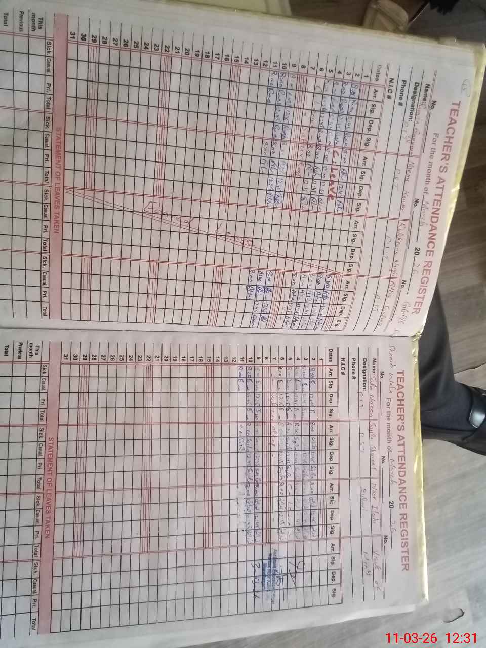 | Leave | Duty | Absent | Maternity | Medical | Ex- Pak |