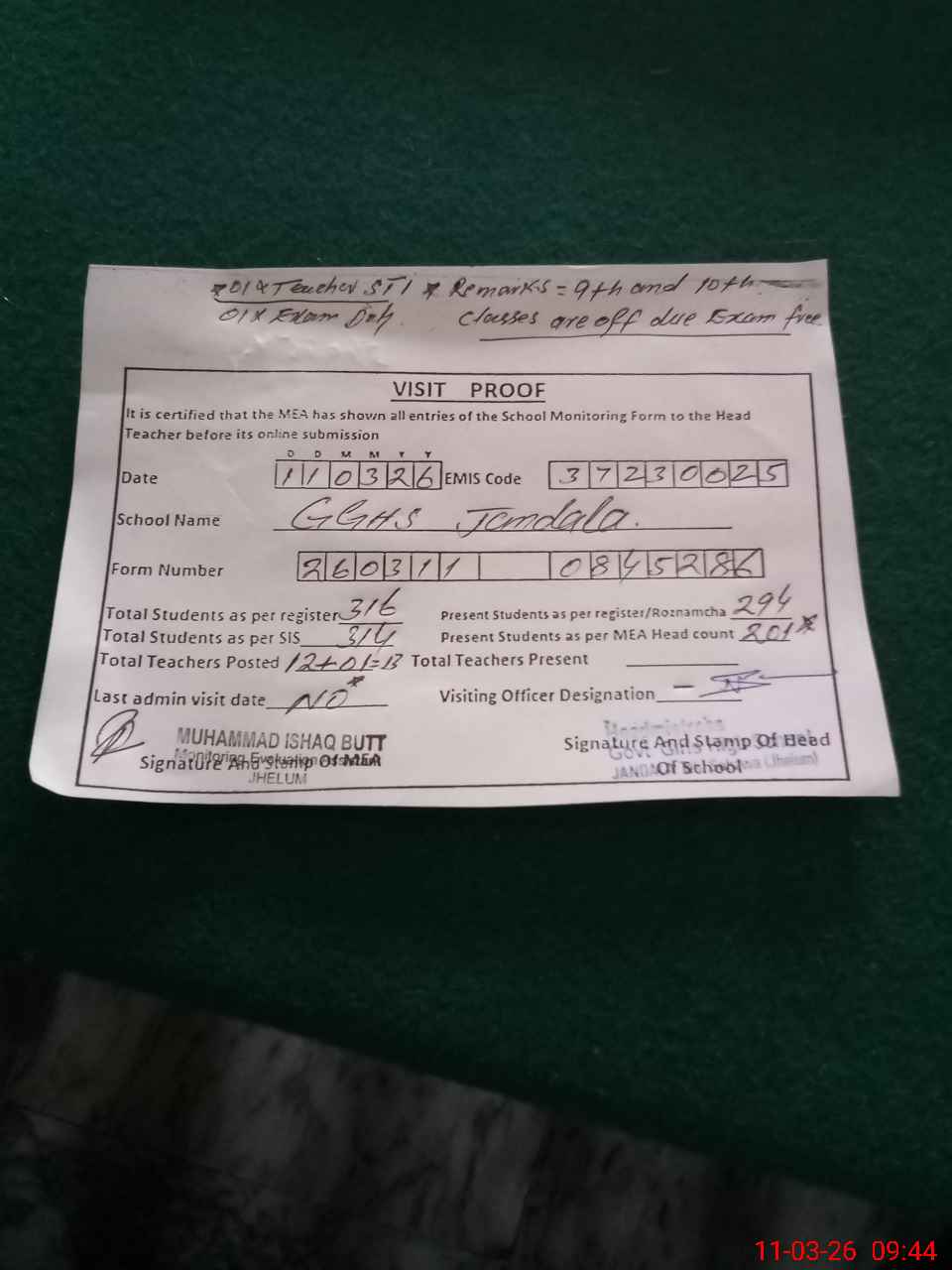| Certified that this School was Inspected by the Undersigned MEA/DMO Today and the Information Stated Above is as Per Record. | |||||