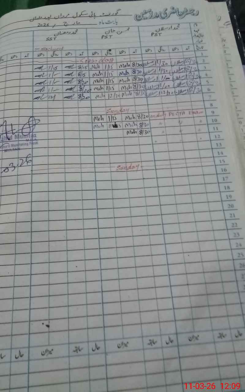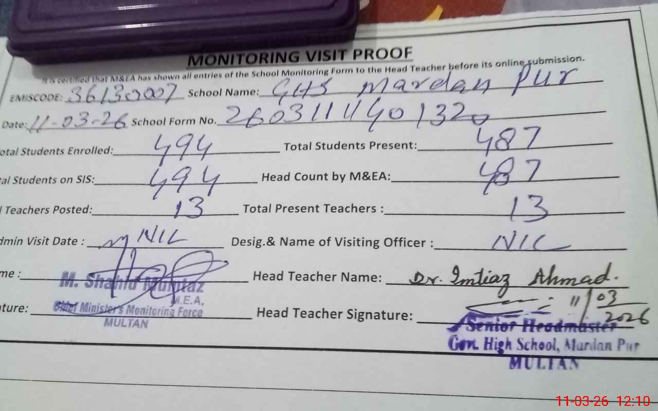 | EMIS Code: 36130007 | Name of School: GHS MARDAN PUR MULTAN | |||