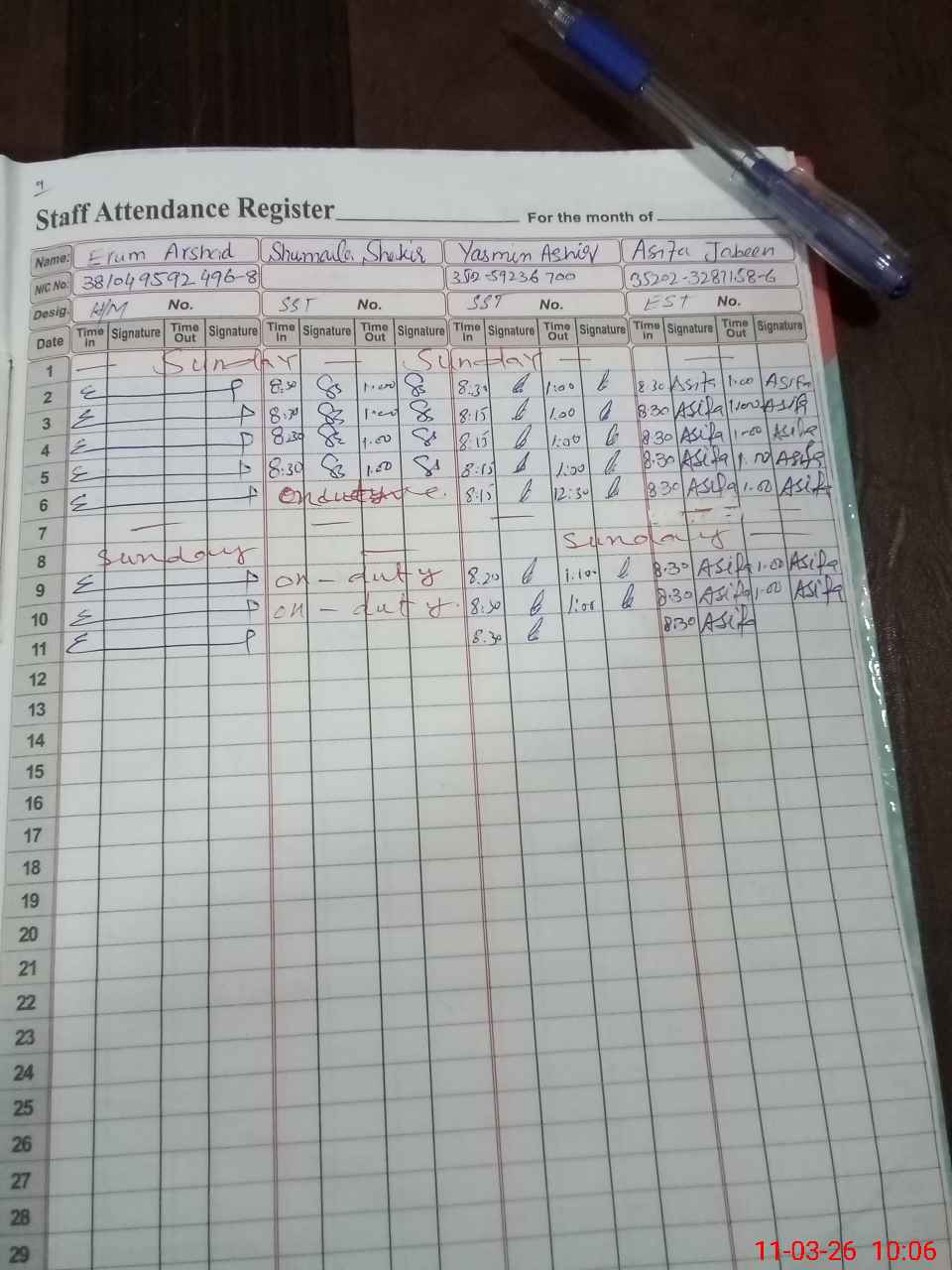 | 35**** | Ra**** Sh**** | PST Arts | Regular | 0 | 0 | 0 | 0 | 0 | 0 | 0 | 0 | 0 | Exam Duty |