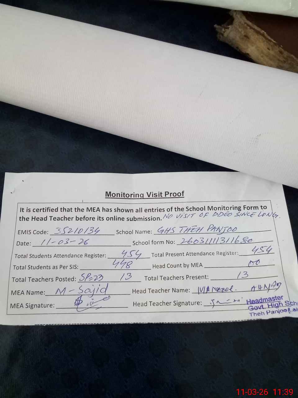 | EMIS Code: 35210134 | Name of School: GHS THEH PANJOO (Newly upgraded) | |||