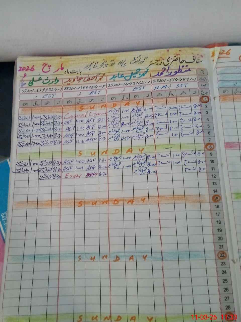 | 35**** | Mu**** Fa**** | NAIB QASID | 2 | 0 | 0 | 0 | 0 | 0 | 0 | 0 | 2 | Exam Duty | |