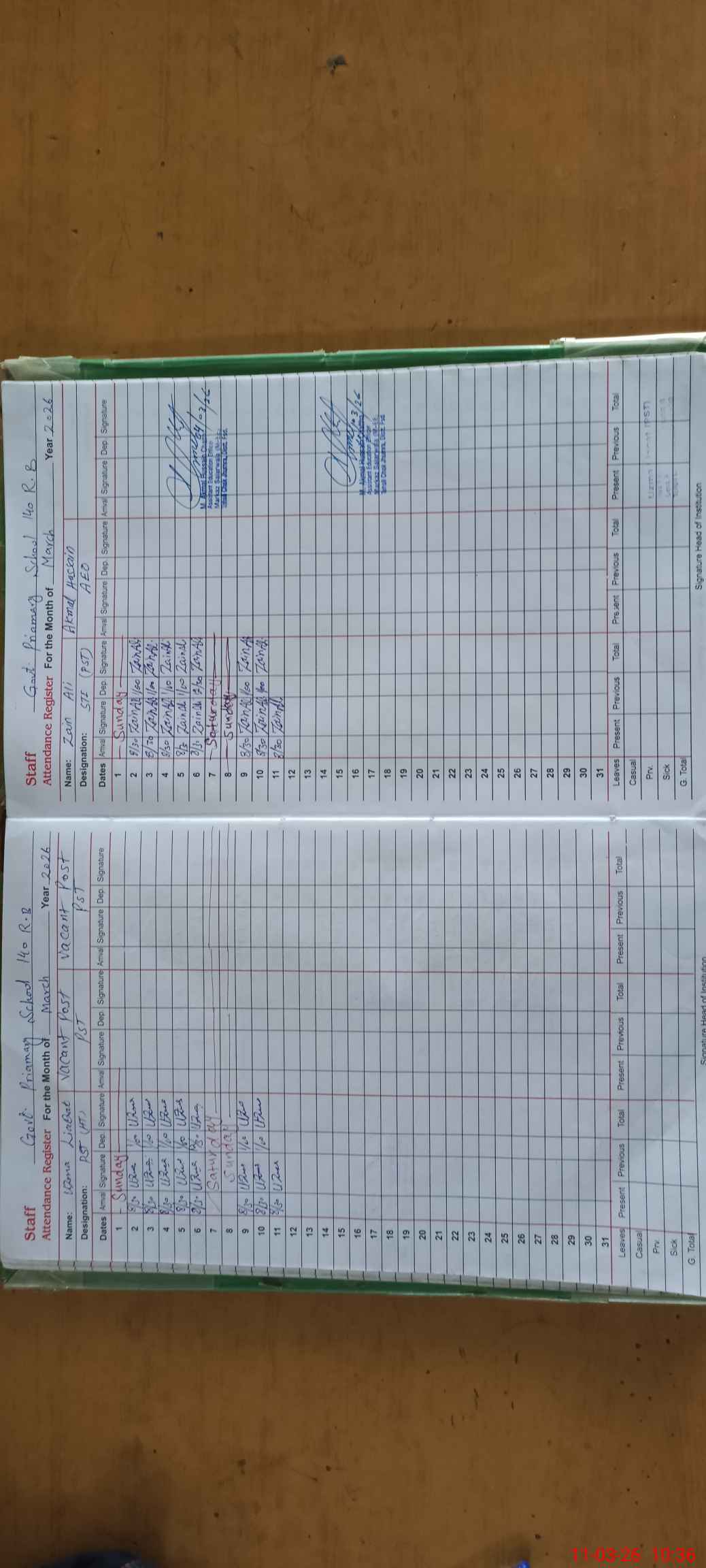 | CNIC | Full Name | Designation | R/C | Absence During Last Calender Month |