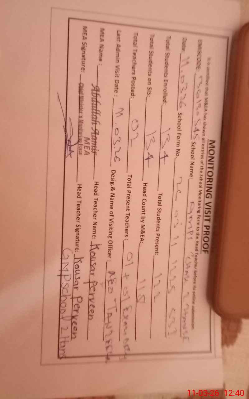 | Certified that this School was Inspected by the Undersigned MEA/DMO Today and the Information Stated Above is as Per Record. | |||||