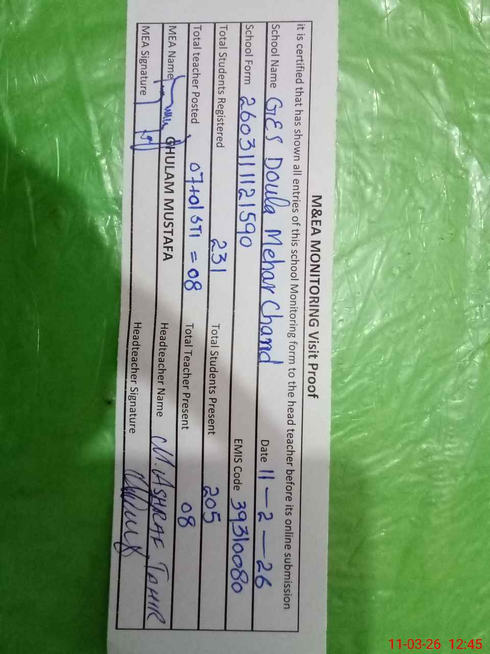 | EMIS Code: 39310080 | Name of School: GES DOULA MEHAR CHAND | |||