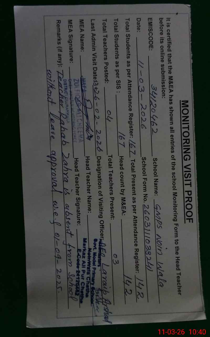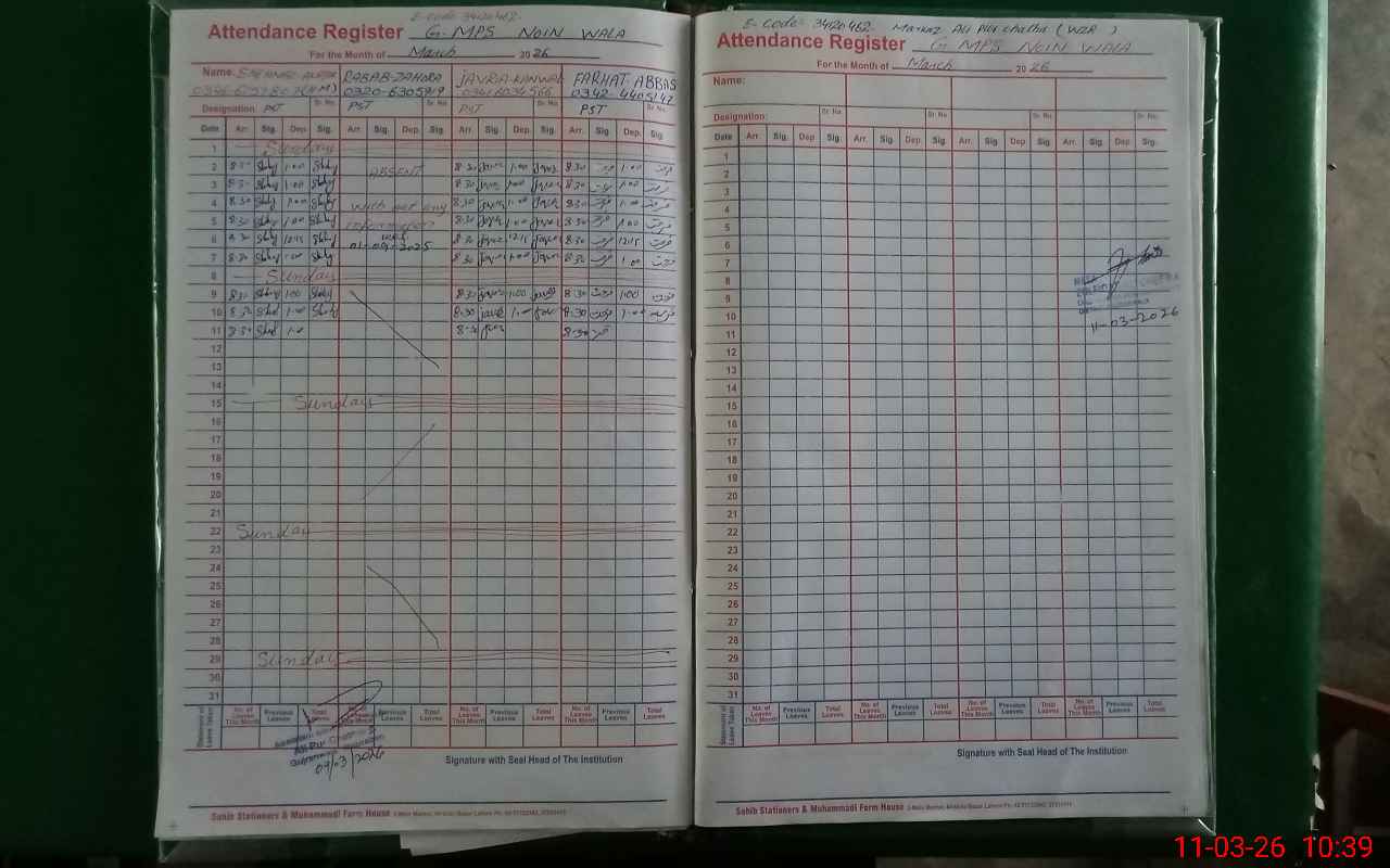 | EMIS Code: 34120462 | Name of School: GMPS NOIN WALA | |||