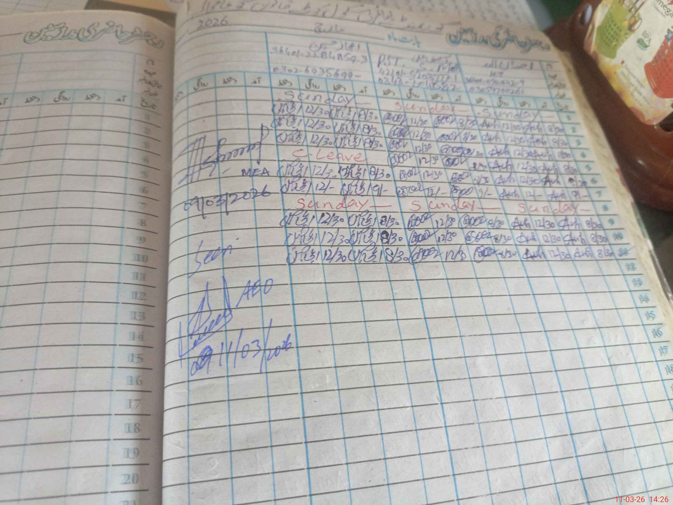 | Name of AEO: | AEO Contact No.: | MEA Phone#: 03**** | ||
