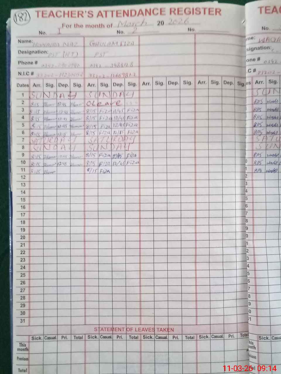| Name: HU**** NA**** Designation: (School Headmaster's/Headmistress's) PST Phone/Cell Number: 03**** |