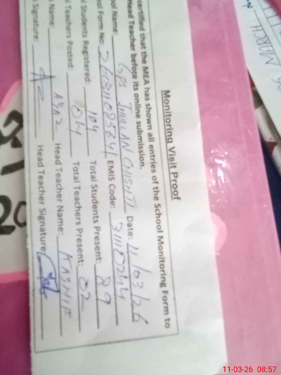 | EMIS Code: 31110244 | Name of School: GPS JHULLAN CHISHTI | |||