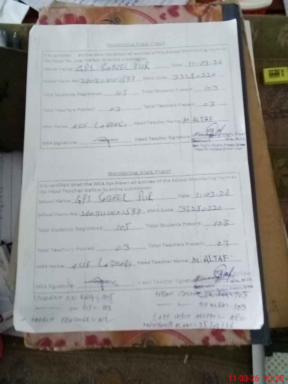 | EMIS Code: 33250220 | Name of School: GPS SABEEL PUR | |||
