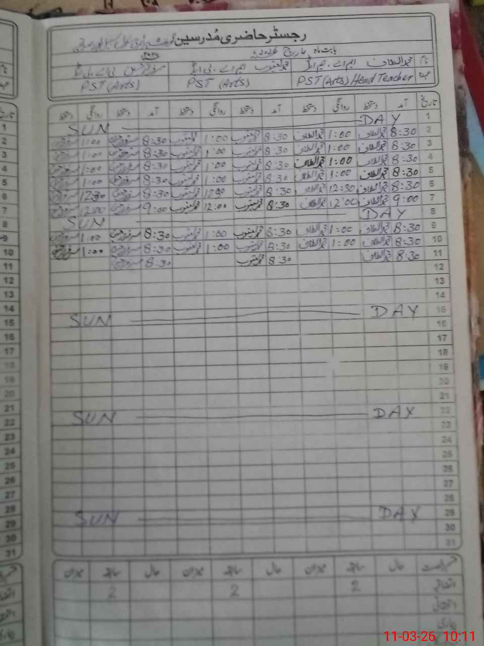 | Name: MU**** AL**** Designation: (School Headmaster's/Headmistress's) PST Phone/Cell Number: 03**** |