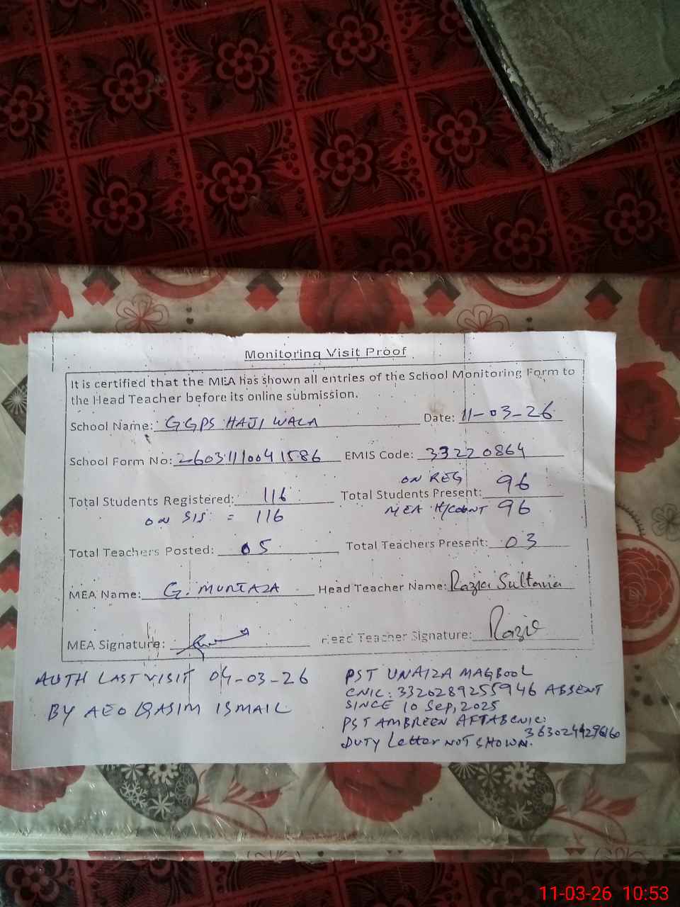 | EMIS Code: 33220864 | Name of School: GGPS HAJI WALA | |||