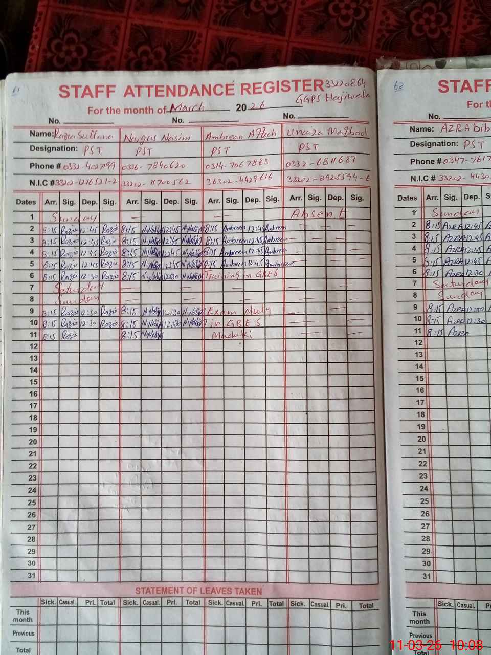 | 33**** | Un**** Ma**** | PST Science/Maths | Regular | 0 | 0 | 28 | 0 | 0 | 0 | 0 | 0 | 0 | Absent (Un-Authorized) |