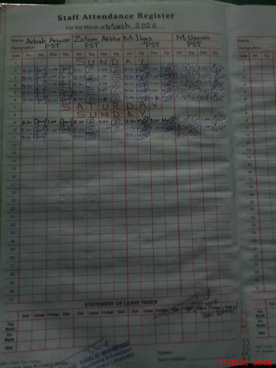 | Attendance Register | Head Teacher | MEA with School | Visit Proof |