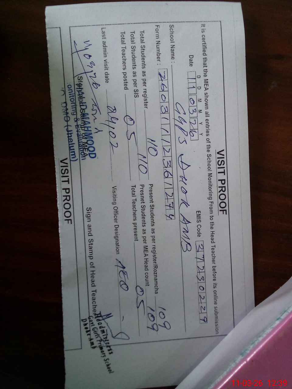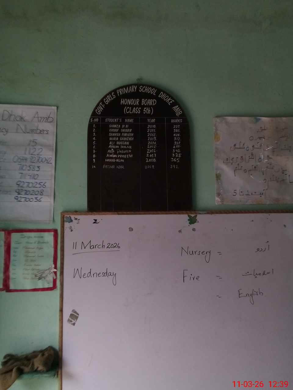 | EMIS Code: 37230229 | Name of School: GGPS DHOK AMB | |||