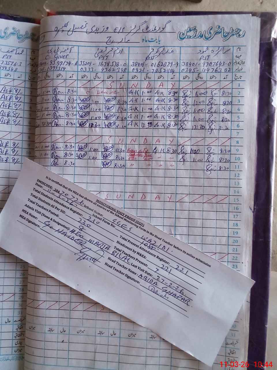 | EMIS Code: 38470726 | Name of School: GGES WAZIDI | |||