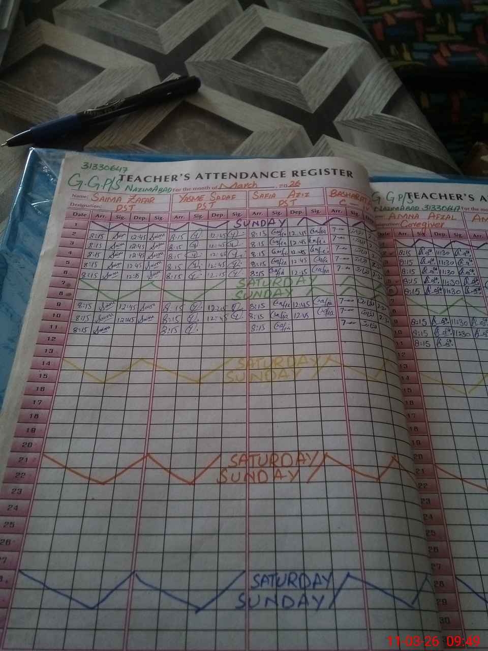 | Remarks (Use Separate Page if Required): SBA is being conducted in school as per schedule. ECE and Nursery classes on exam off students furniture shortage of 60 students. NSB Cash book incomplete. data can't be calculated as required. construction work of 02 classroom have been stopped due to non availability of funds | |||||