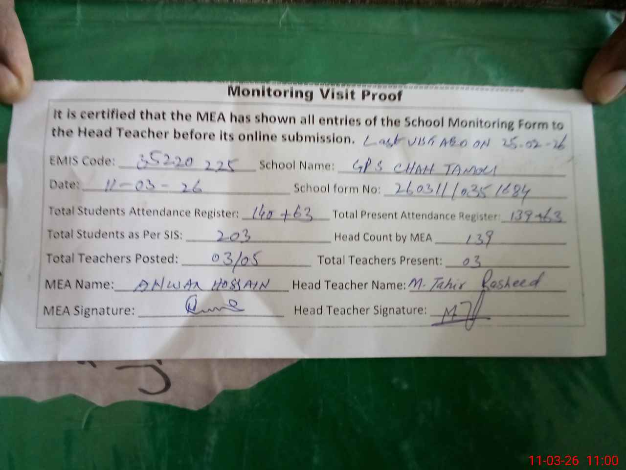 | EMIS Code: 35220225 | Name of School: GPS CHAH TAMOLI | |||