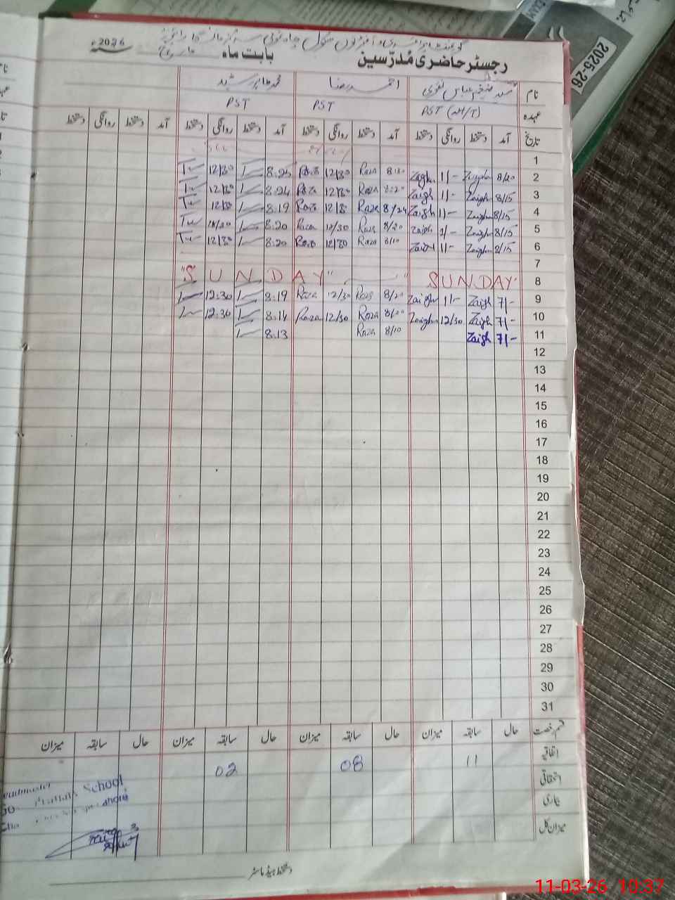 | Remarks (Use Separate Page if Required): Last visit AEO on 25 February 2026 FTF Account deactivated almost last 07 years School collect fund and consumed directly School Head Teacher has gone with 08 class student for examination at GHS Bucho ki Majha | |||||