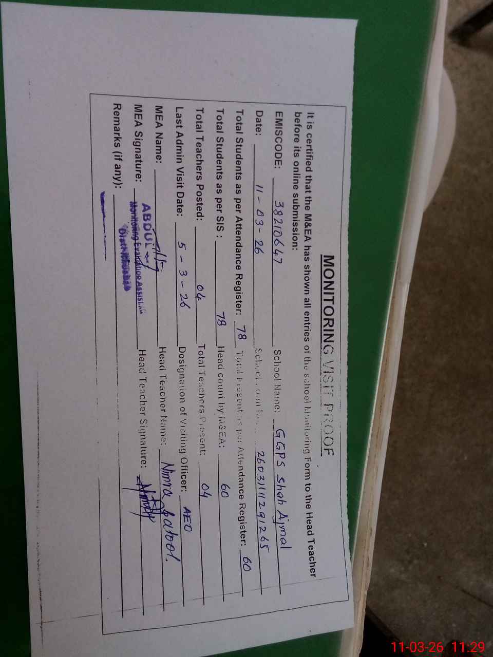 | EMIS Code: 38210647 | Name of School: GGPS SHAH AJMAL GIROTE | |||