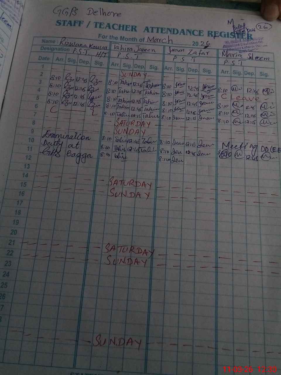 | 37**** | Ri**** Ko**** | PST (Science-Math) | Regular | 0 | 0 | 0 | 0 | 0 | 0 | 0 | 0 | 0 | Exam Duty |