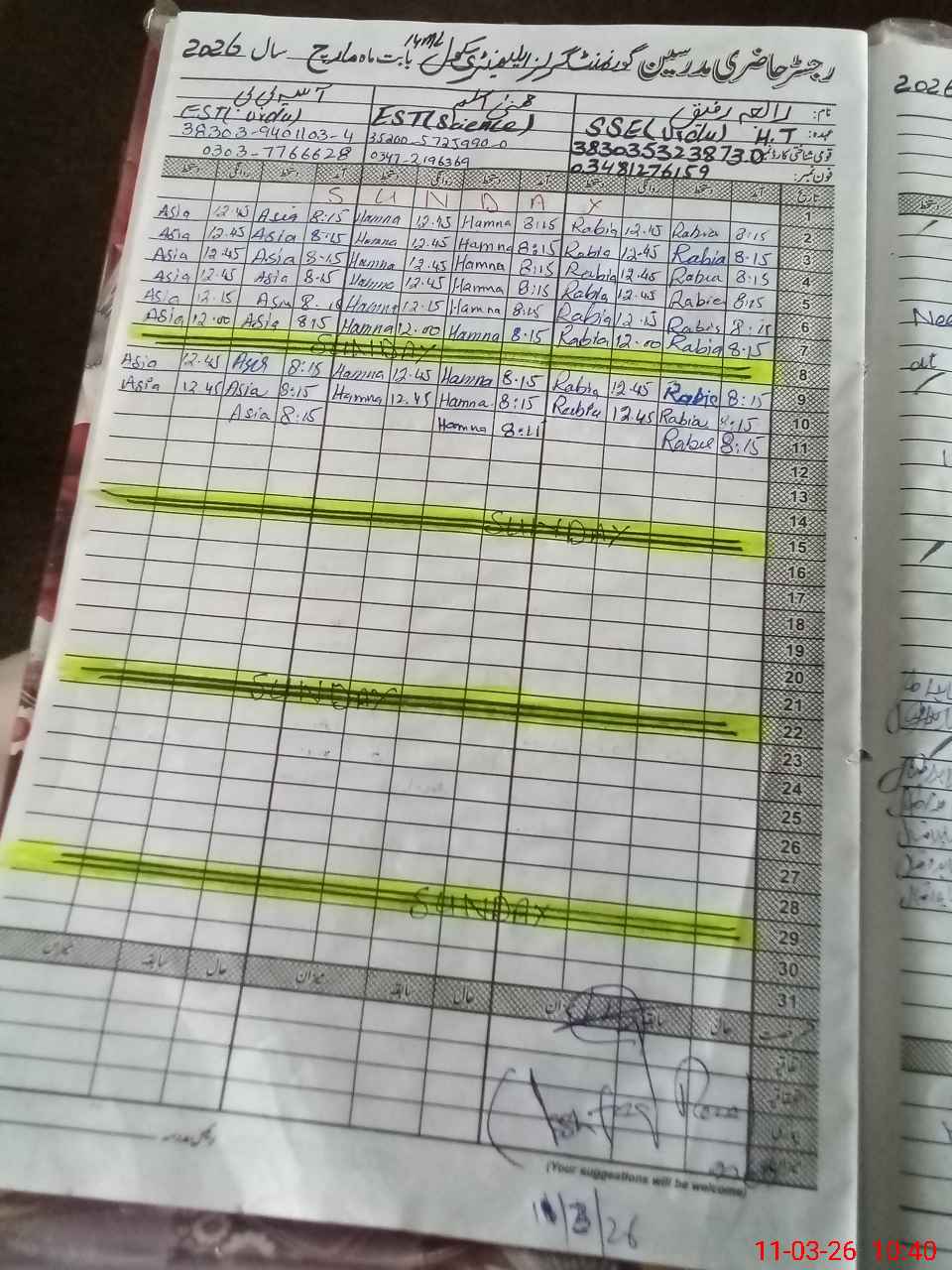 | Name: RA**** RA**** Designation: (School Headmaster's/Headmistress's) SSE ( URDU ) Phone/Cell Number: 03**** |