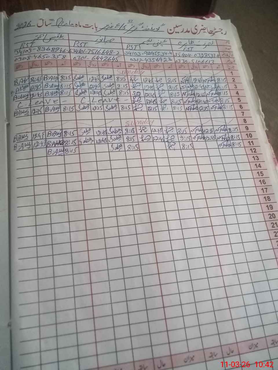 | CNIC | Full Name | Designation | R/C | Absence During Last Calender Month |