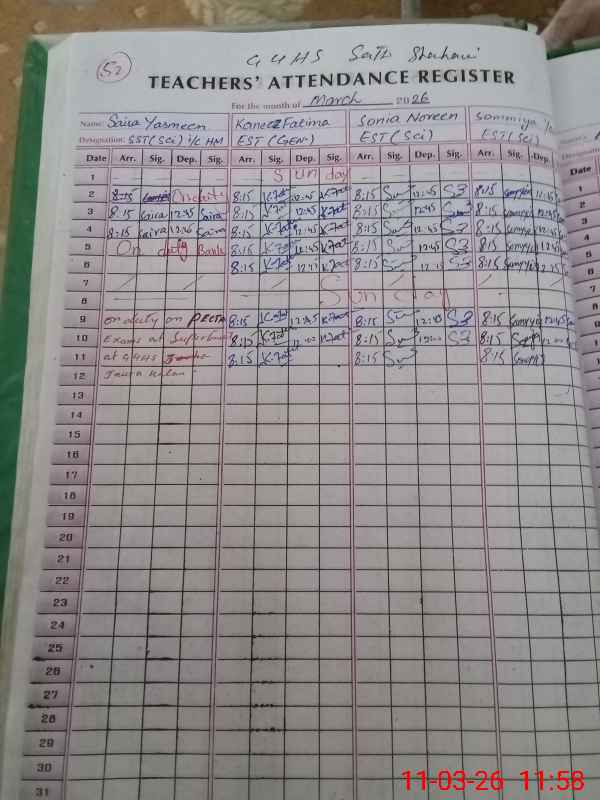 | 38**** | Sa**** Ya**** | SST Science | Regular | 0 | 0 | 0 | 0 | 0 | 0 | 0 | 0 | 0 | Exam Duty |