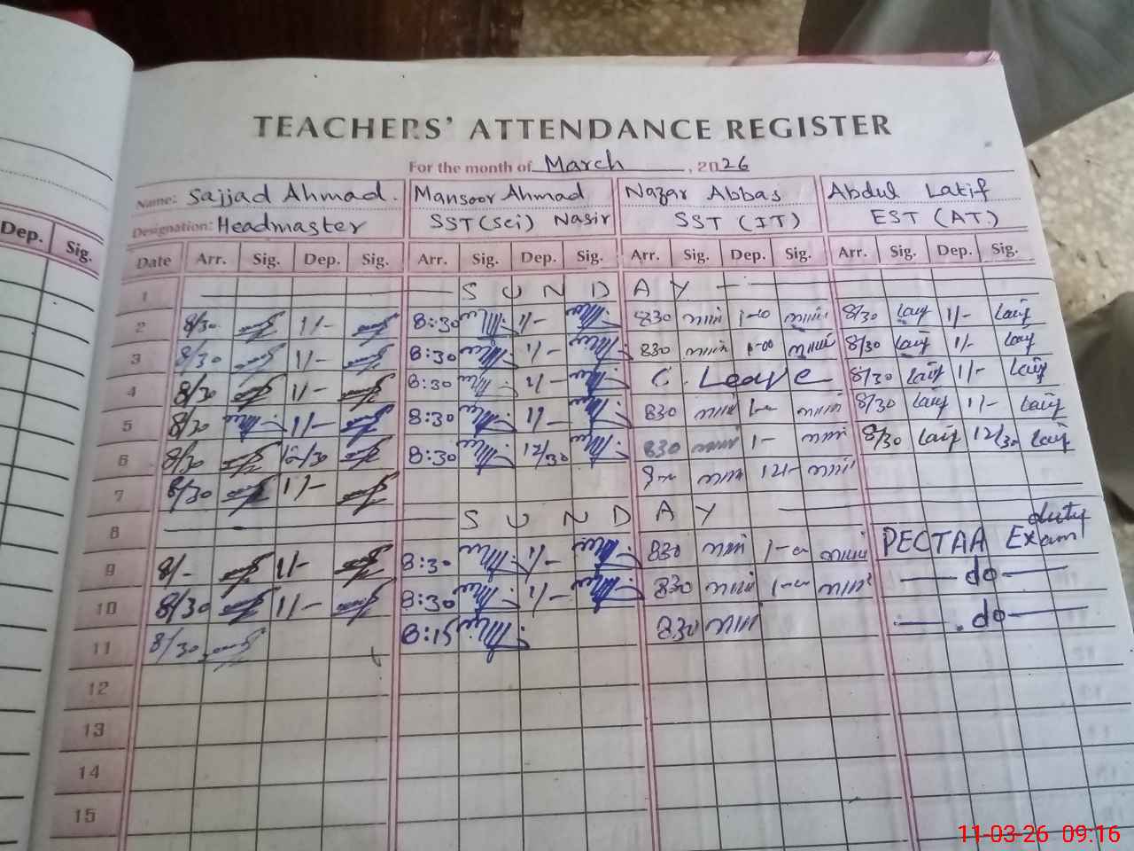| 36**** | Im**** Ah**** | EST General Arts | Regular | 0 | 0 | 0 | 0 | 0 | 0 | 0 | 0 | 0 | Exam Duty |