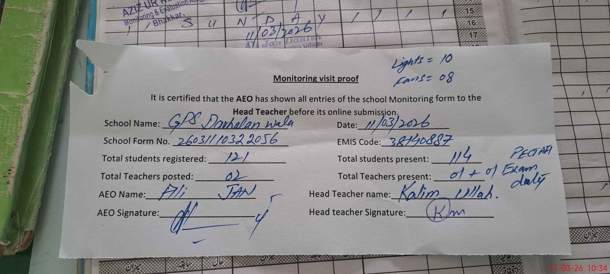 | EMIS Code: 38140887 | Name of School: GPS DARHALAN WALA | |||