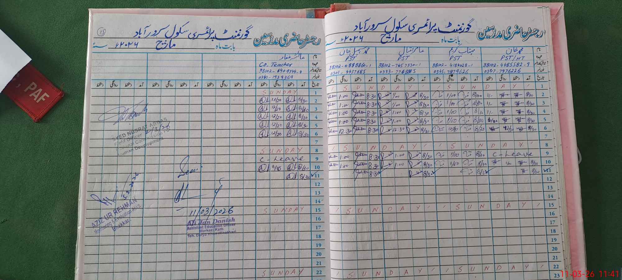 | CNIC | Full Name | Designation | R/C | Absence During Last Calender Month |