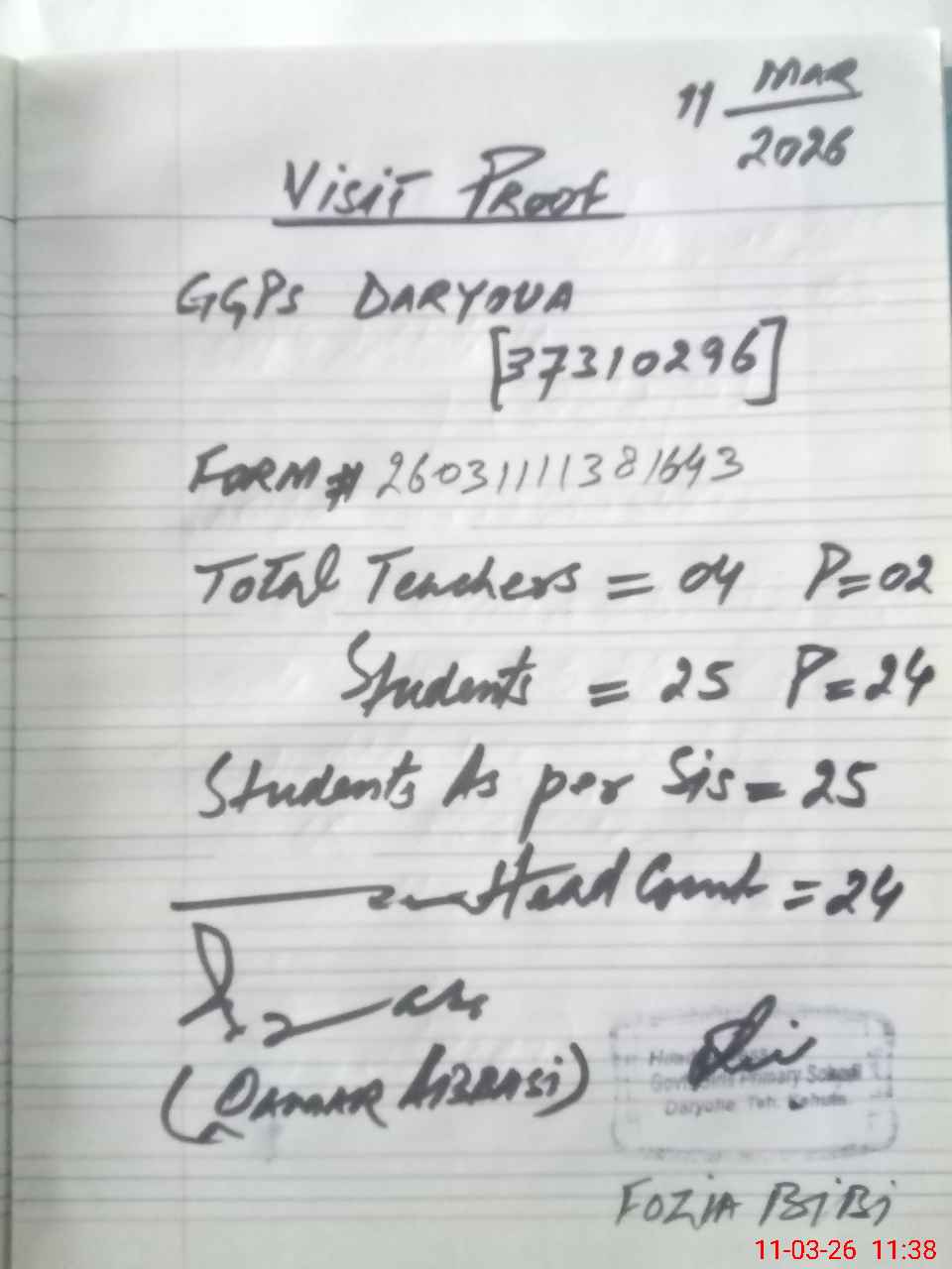| EMIS Code: 37310296 | Name of School: GGPS DARYOUA | |||