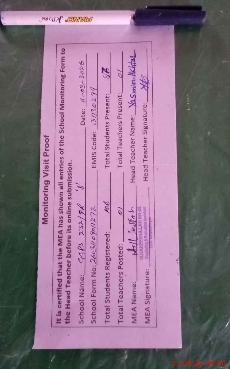 | EMIS Code: 31130299 | Name of School: GGPS CHAK NO 232/9-R S | |||