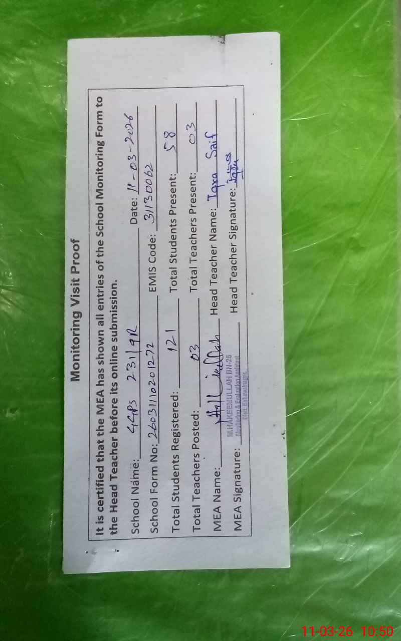 | EMIS Code: 31130062 | Name of School: GGPS CHAK 231/9-R | |||
