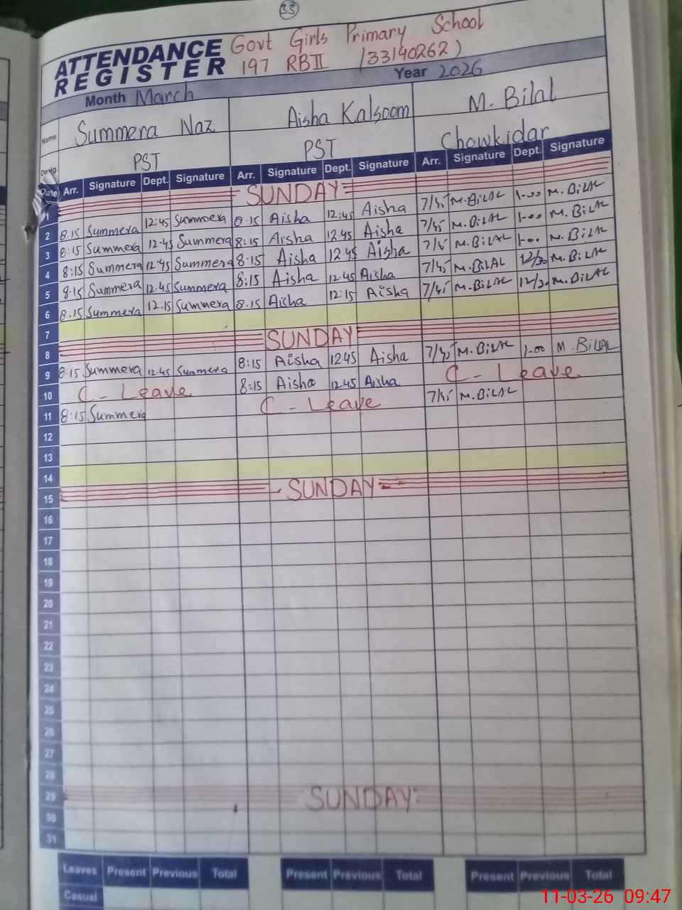 | 33**** | Ai**** Ka**** | PST Science/Maths | Regular | 2 | 0 | 0 | 0 | 0 | 0 | 0 | 0 | 2 | Casual |