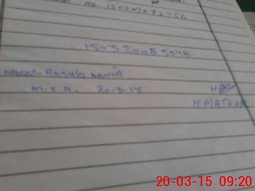 | Monitoring Date: 20-03-2015 | Start Time: 20-03-2015 08:41 AM | End Time: 20-03-2015 09:22 AM | Name of MEA: Ab**** Ra**** Am**** BN**** 28 | |